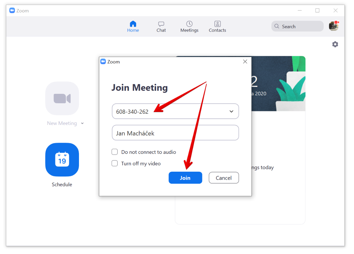 Jestli jste si již aplikaci Zoom nainstalovali a povedlo se vám se i zaregistrovat, tak přihlášení do online kurzu jde raz dva. Stačí si Zoom zapnout a kliknout na „Join”. Pak do okénka vyplníte číslo online kurzu vašeho lektora a jdete na to.