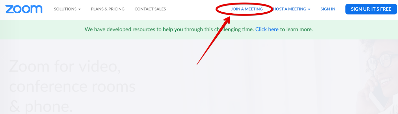 Připojení ke kurzu přes web Zoom.us. Klikněte na „Join a meeting”Zoom